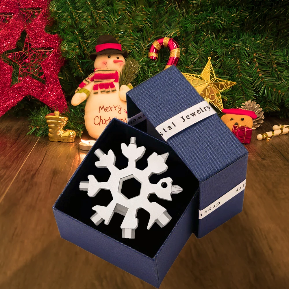 Name: Herramienta de bolsillo múltiple de copo de nieve 18 en 1, llavero, llave hexagonal, llave multifunción, herramientas de mano con caja de almacenamiento